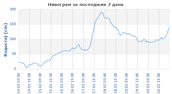 | Изаберите назив хидролошке станице за табеларни и графички приказ података за последњих 7 и 30 дана. Напомена: Подаци су привремени, неконтролисани, нису проверени и могу садржати погрешне вредности. Подаци могу бити нетачни због грешака инструмената, кварова или физичких промена на месту мерења. Подаци могу каснити због проблема у преносу података или у раду система. Подаци се ажурирају свакодневно у више термина. За детаље о рачунању времена видети Закон о рачунању времена ("Службени лист СЦГ", бр. 20/2006). |