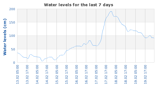 | Station | River | Date and time | Water level (cm) |