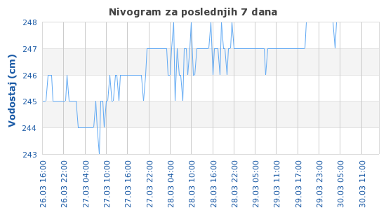 Za dodatne informacije o stanici izaberite njen naziv.Časovne vrednosti vodostaja - poslednjih 7 dana: