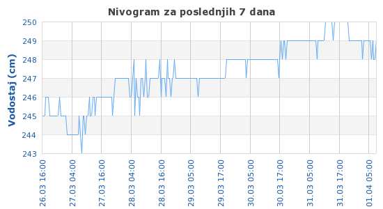 Za dodatne informacije o stanici izaberite njen naziv.Časovne vrednosti vodostaja - poslednjih 7 dana:
